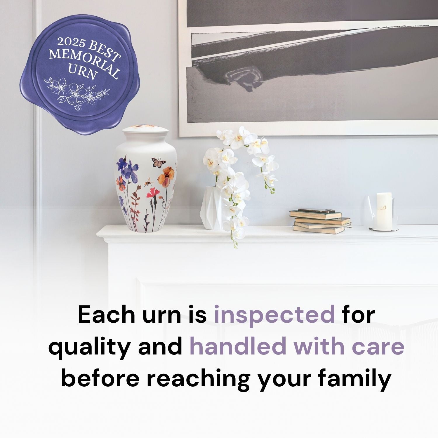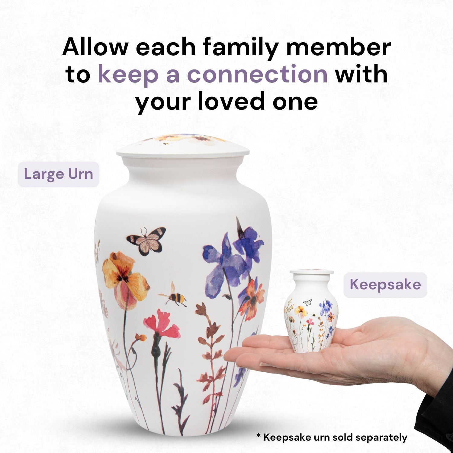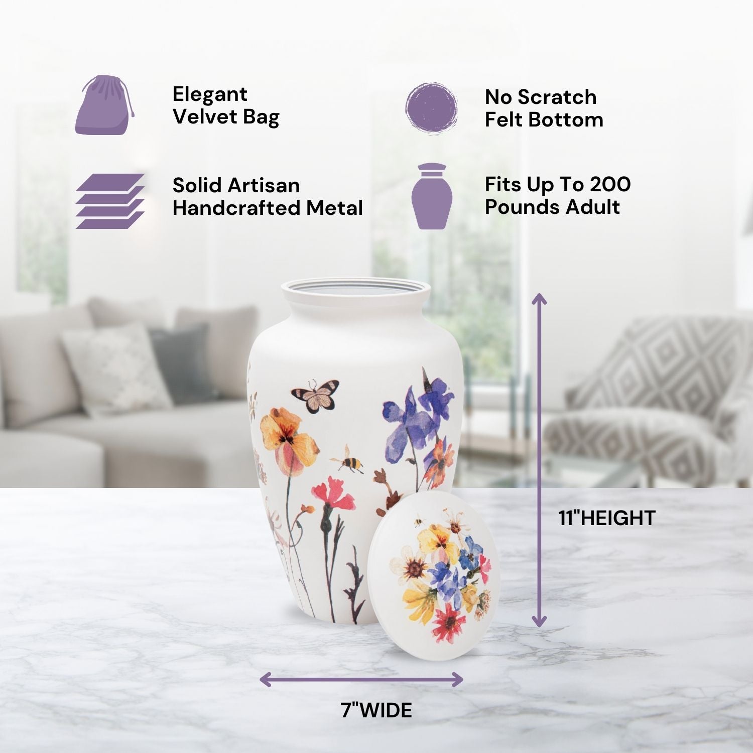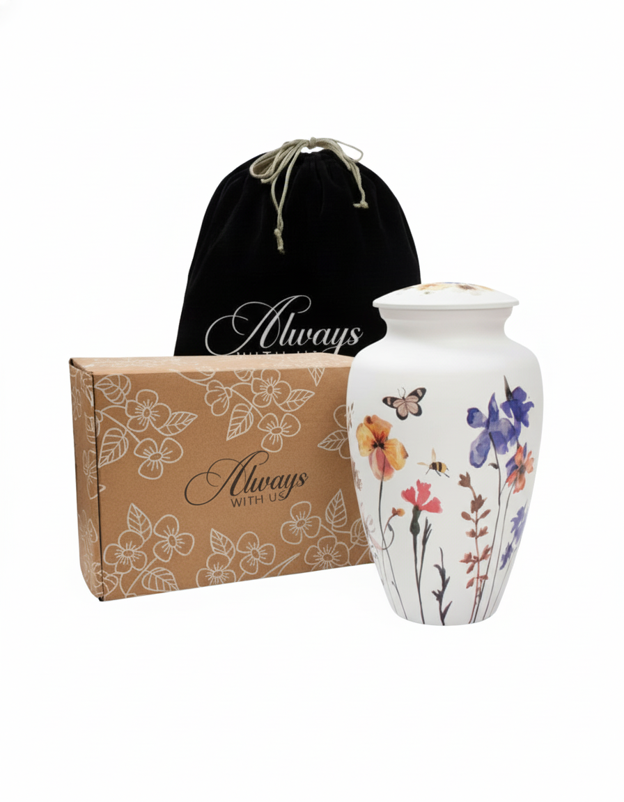 Soft watercolor wildflowers bring warmth and natural beauty to this elegant urn. A peaceful tribute to cherished memories.